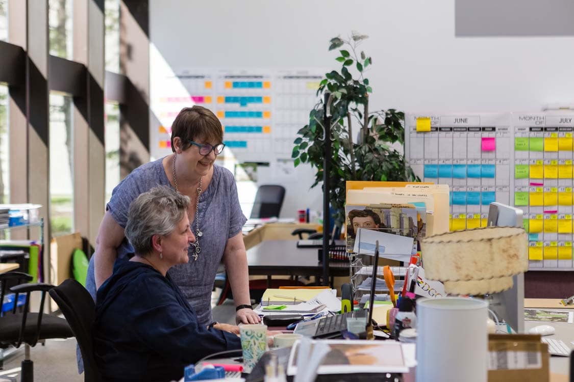 Parce que l’entrepreneuriat – au féminin ou non – est beaucoup mis de l’avant aujourd’hui, on oublie que beaucoup de femmes s’y intéressaient déjà dans les années 80, y compris dans le milieu artistique. Phyllis Laing est allée chercher du soutien dans le groupe Women’s Enterprise Centre, qui offrait des programmes de mentorat pour développer des plans d’affaires et des outils visant à bien démarrer une entreprise. Mais pour elle, le mentorat ne doit pas rester l’apanage d’une entreprise en démarrage. «Je suis toujours à la recherche de mentors, avoue-t-elle. Ce n’est pas une question d’âge, mais une question de trouver des défis à sa hauteur. On ne peut pas diriger et garder une entreprise telle qu’elle était il y a 25 ans.»