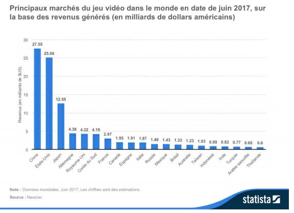 10. Via Statista, “Leading gaming markets worldwide as of June 2017, by gaming revenue (in billion U.S. dollars)”